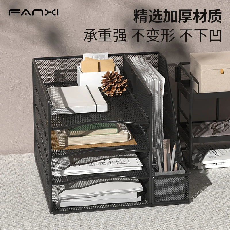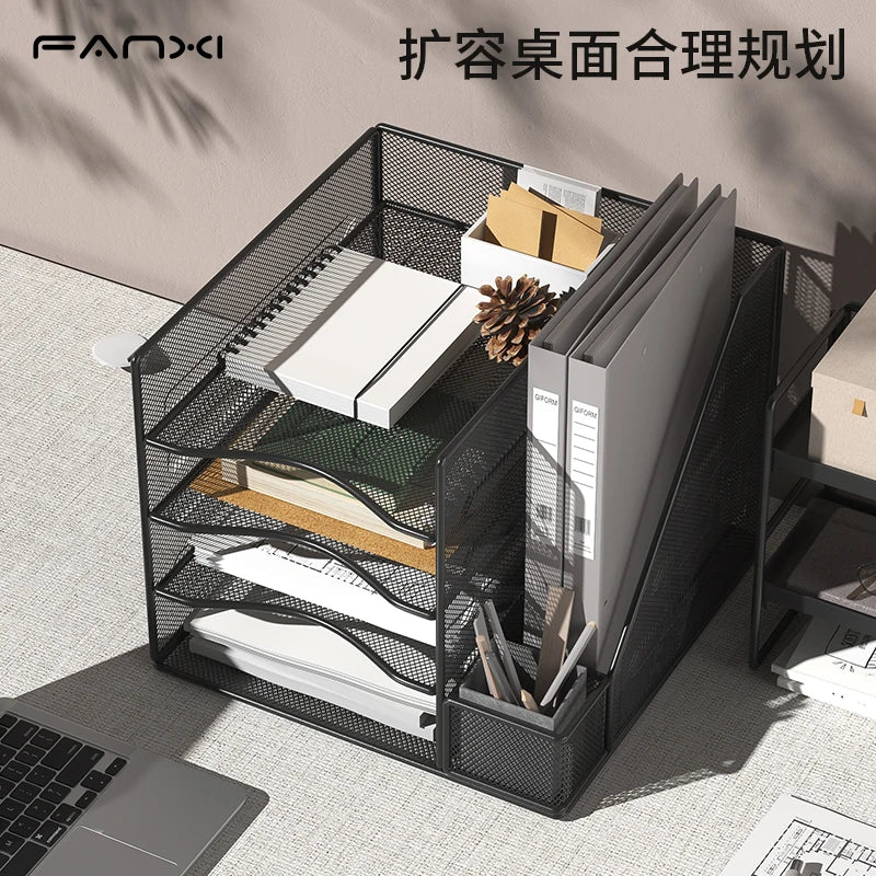 Office desktop file rack metal book stand, multi-functional integrated storage rack office supplies folder storage box organizer