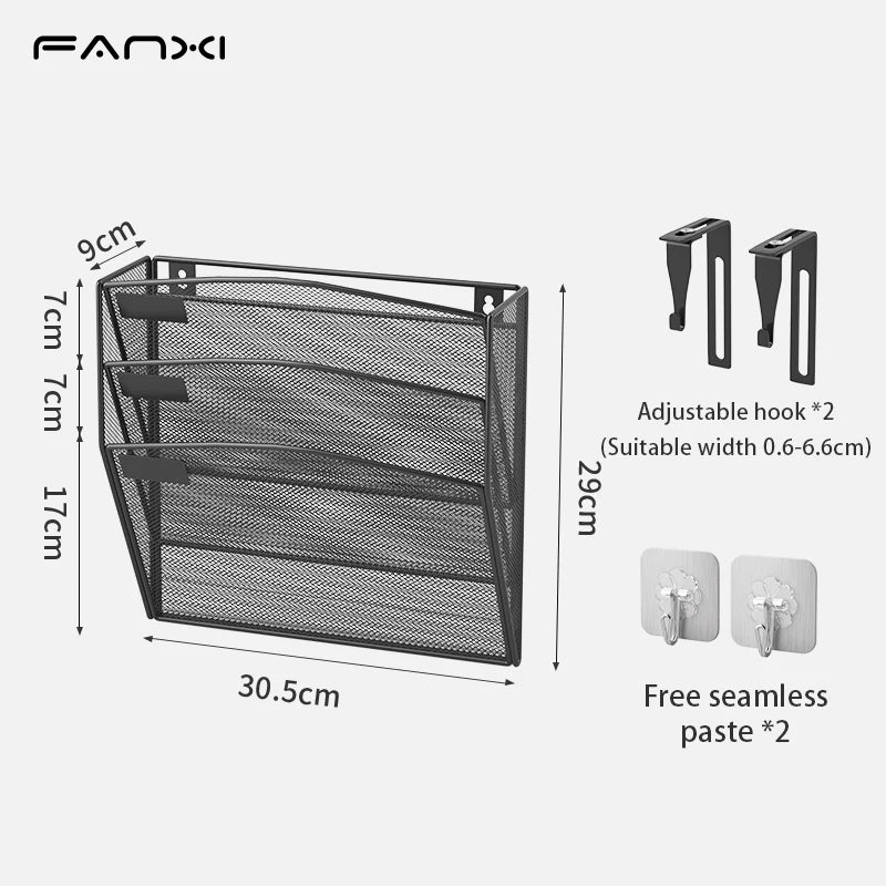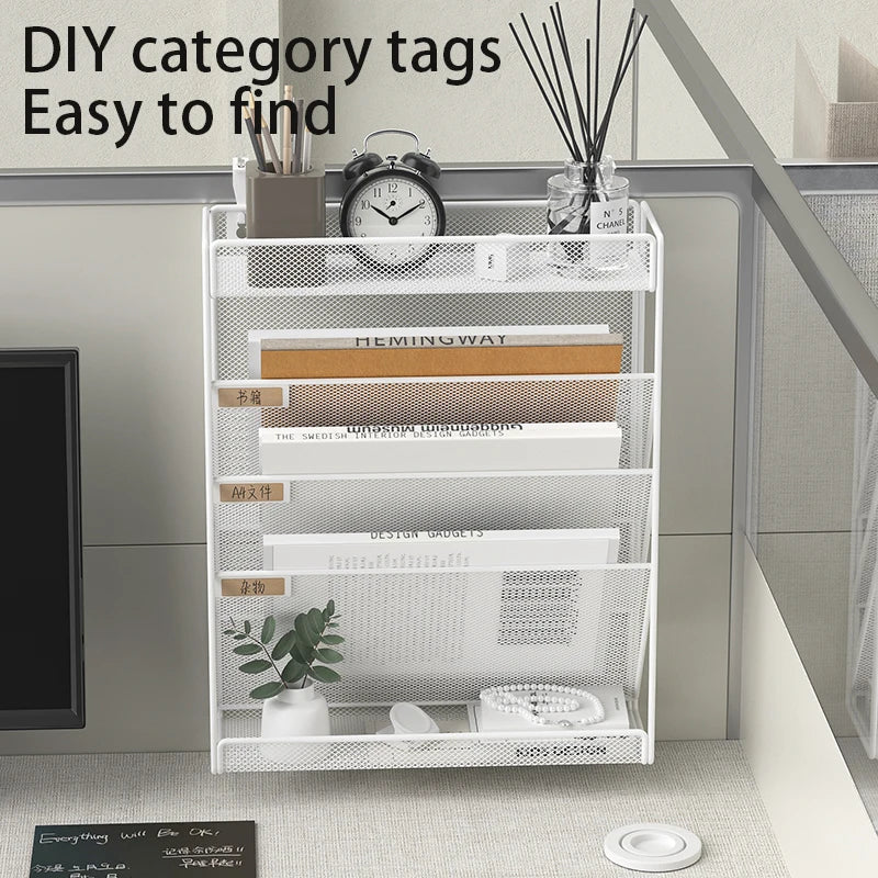 Wall File Organizer Mesh 5 Tier Wall File Holder Desktop Vertical Hanging File Folder Organizer with Bottom Flat Tray