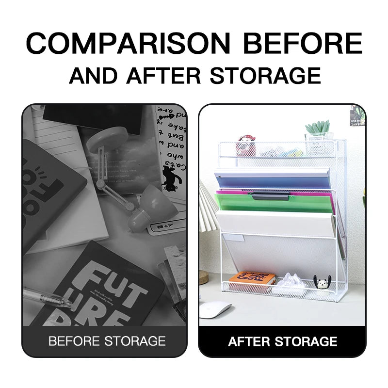 Wall-mounted file organizer Office mesh wall file holder Magazine paper holder with category name tag