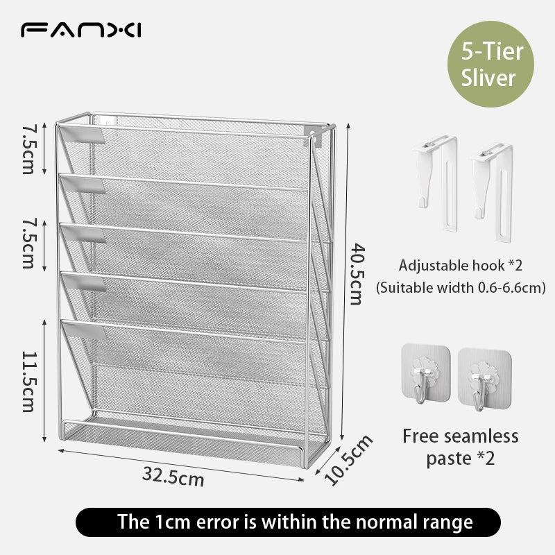Wall-mounted office storage rack 5-level vertical file/letter rack Rugged mesh design for desktop or cubicle storage, silver